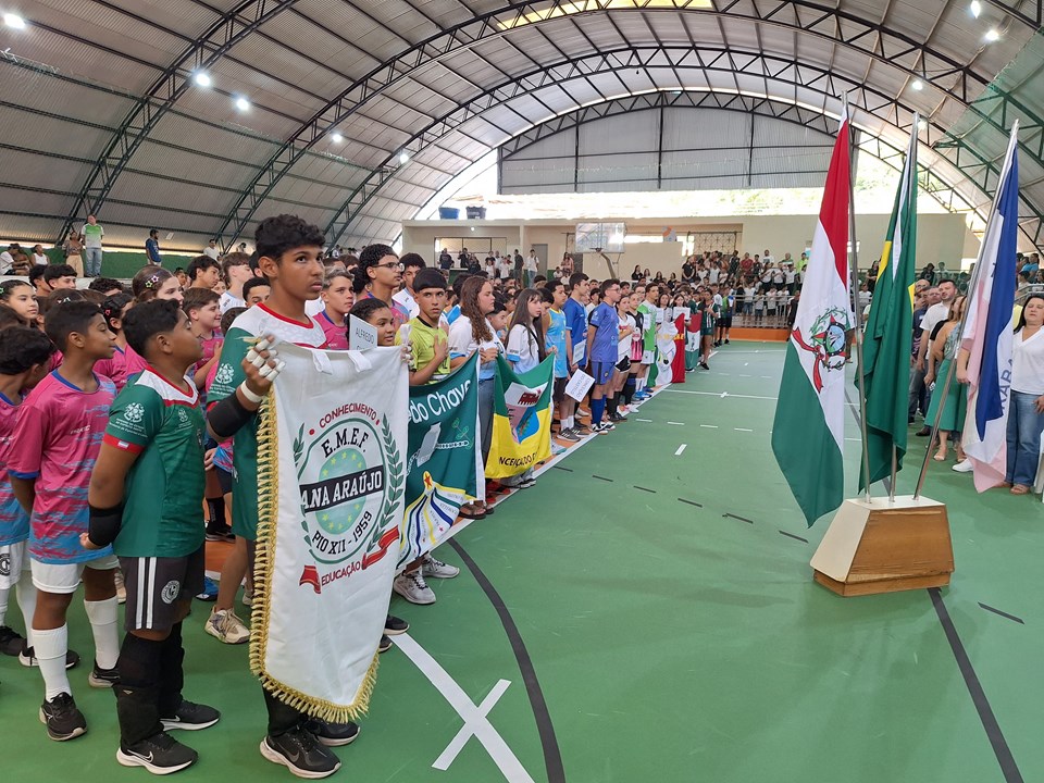 As cerimônias de abertura da última semana da etapa regional dos Jogos Escolares do Espírito Santo (JEES) reuniram estudantes e autoridades nesta segunda-feira (02), marcando o início das disputas nos municípios sedes de Afonso Cláudio (Regional VII) e Vila Velha (Regional VIII). As competições incluem basquete, futsal, handebol e vôlei, com a participação de alunos de 12 a 17 anos.