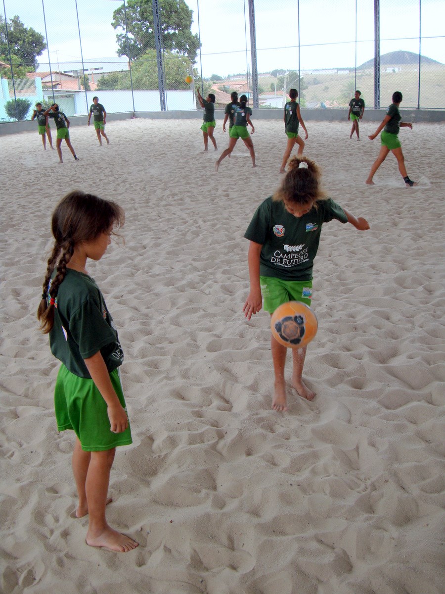 Em Montanha, a modalidade de futebol de areia vem sendo desenvolvida desde junho. “Muitos desses meninos ficavam na rua após as aulas, dava até pena. Agora, eles têm uma atividade que os interessa, uma atividade saudável e segura. Inclusive os amigos deles que não participam dos treinamentos vêm até aqui para assistir”, descreve Jaqueline Favarato, professora responsável pelo núcleo.