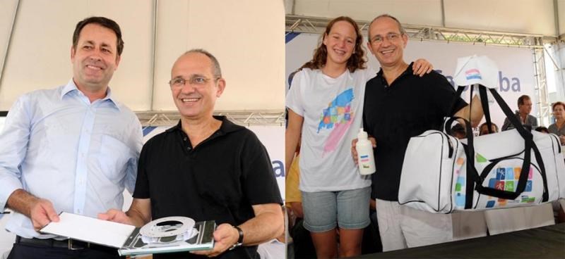 Antes de seus discursos o governador e o secretário foram homenageados por alunas do projeto de inclusão social Campeões de Futuro com camisas, uniformes do projeto. Além disso, a nadadora capixaba Carol Bilich presenteou o governador com um Kit Atleta, que será dado a todos os competidores capixabas, beneficiados com o Bolsa-Atleta Capixaba.