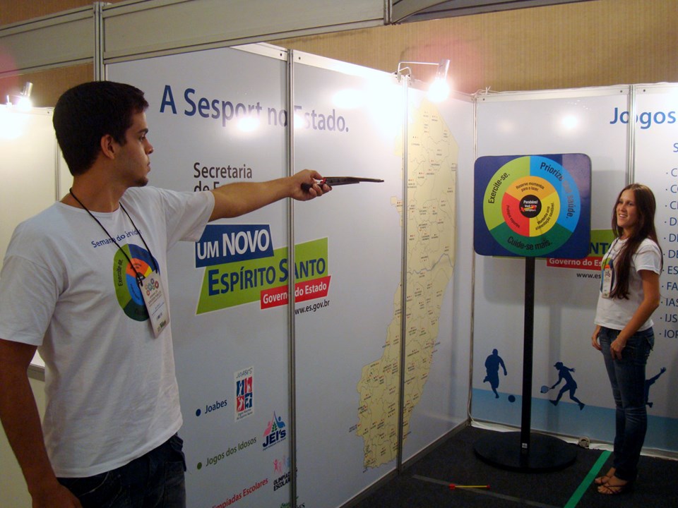O estande apresenta as ações da Secretaria, que já alcançaram todos os municípios do Estado, através das Olimpíadas Escolares (OES), dos Jogos Abertos (Joabes), dos Jogos dos Idosos (JEIs) e do projeto Campeões de Futuro. Além disso, o espaço conta com uma brincadeira, onde o objetivo é acertar as flechas no alvo, que faz sucesso na feira.